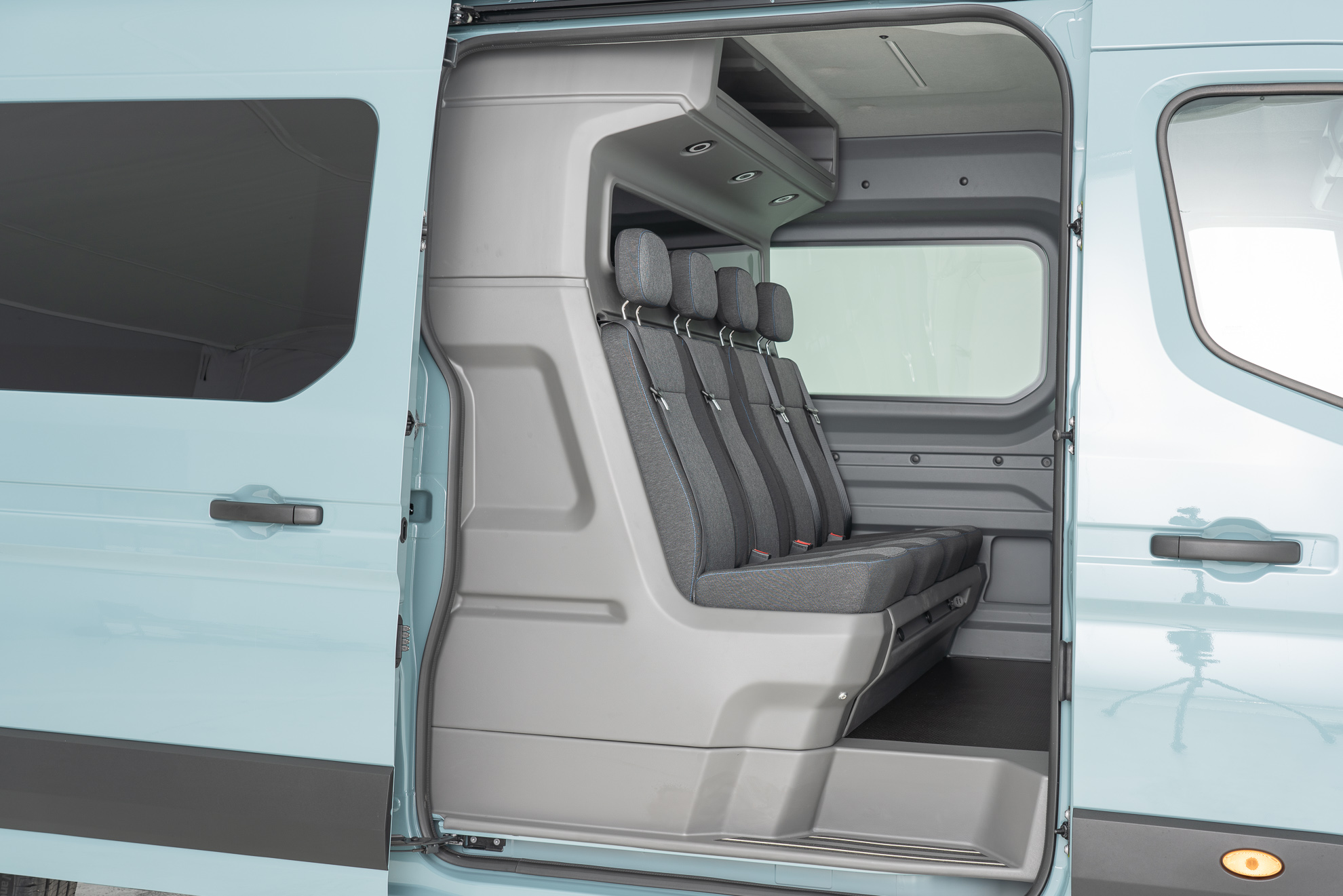 DualCab to zabudowa brygadowa, na którą składa się przegroda oddzielająca przestrzeń ładunkową od pasażerskiej, wygodna kanapa trzy lub cztero-osobowa oraz zabudowanie przestrzeni pasażerskiej i ładunkowej. Wykorzystując technologię termoformowania, nasze rozwiązanie zmienia standardy w branży transportu pasażerskiego.